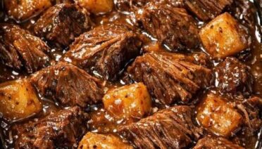 This 4-Ingredient Slow Cooker Beef Tips and Potatoes is pure comfort in a bowl