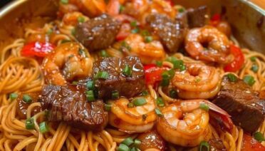 Steak and Shrimp Teriyaki Noodles