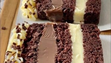 Decadent Layered Chocolate Cake with Creamy Filling & Ganache Topping
