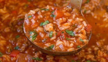 Hearty and Flavorful Stuffed Pepper Soup with Ground Beef and Rice