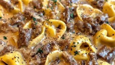 Cheesesteak Tortellini in Creamy Provolone Sauce