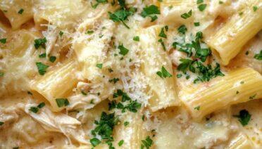 Slow cooker chicken Alfredo rigatoni