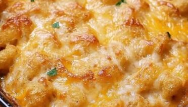 This warm, nostalgic casserole features layers of seasoned ground meat and veggies mixed into a creamy sauce, then finished with a crunchy blanket of tater tots and gooey melted cheddar.