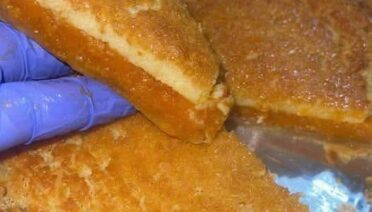 rich, golden, custardy pie with a slightly sugary, crisp top