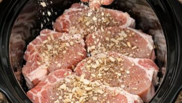 Sprinkle onion soup mix over pork chops, joined by 3 ingredients, into slow cooker for a savory feast that I crave this week after week