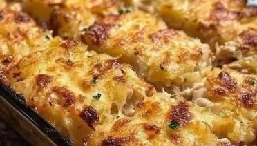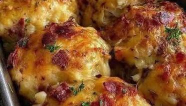 “Million Dollar” baked chicken—chicken breasts topped with a creamy cheese mixture (cream cheese, mayo, mozzarella/cheddar)